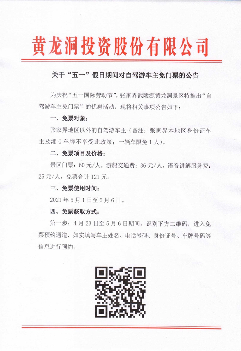 關(guān)于“五一”假日期間對(duì)自駕游車(chē)主免門(mén)票的公告